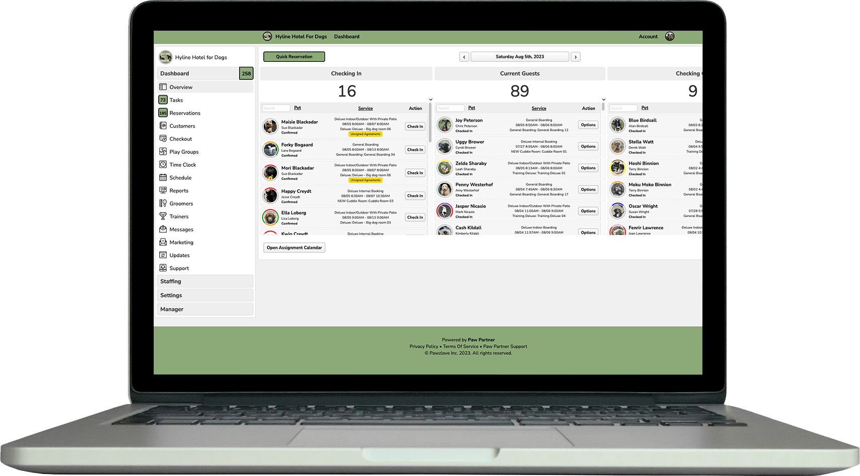See how many dogs you have confirmed and checked-in. And then check your pending requests and confirm them directly, without having to call or email your client.